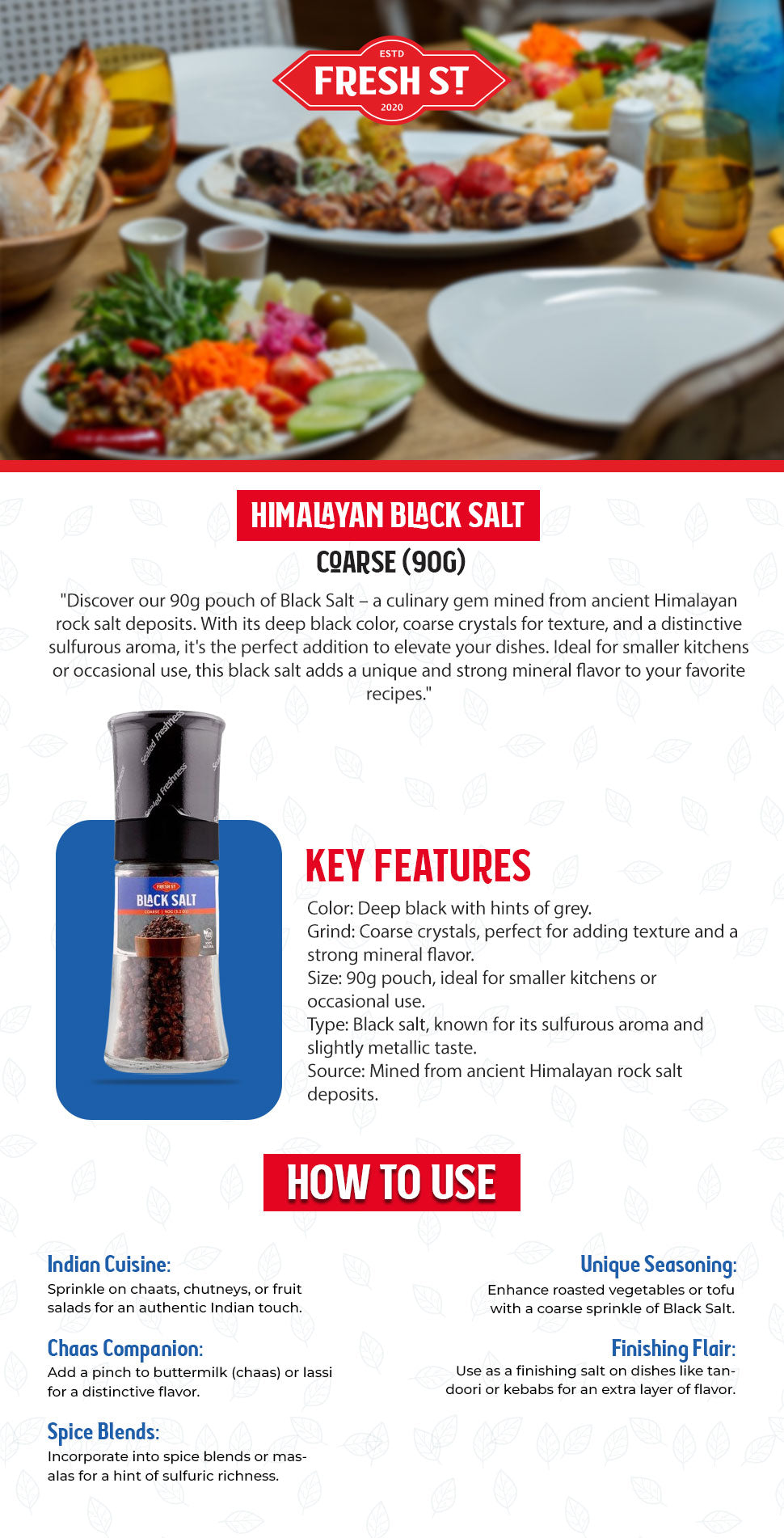 Discover our Himalayan Black Salt Coarse, sourced from ancient Himalayan rock salt deposits. Its deep black color, coarse texture, and distinctive sulfurous aroma enhance your dishes with a unique mineral flavor. Perfect for smaller kitchens or occasional use, it adds a bold touch to your favorite recipes, elevating every meal with a rich, savory taste.