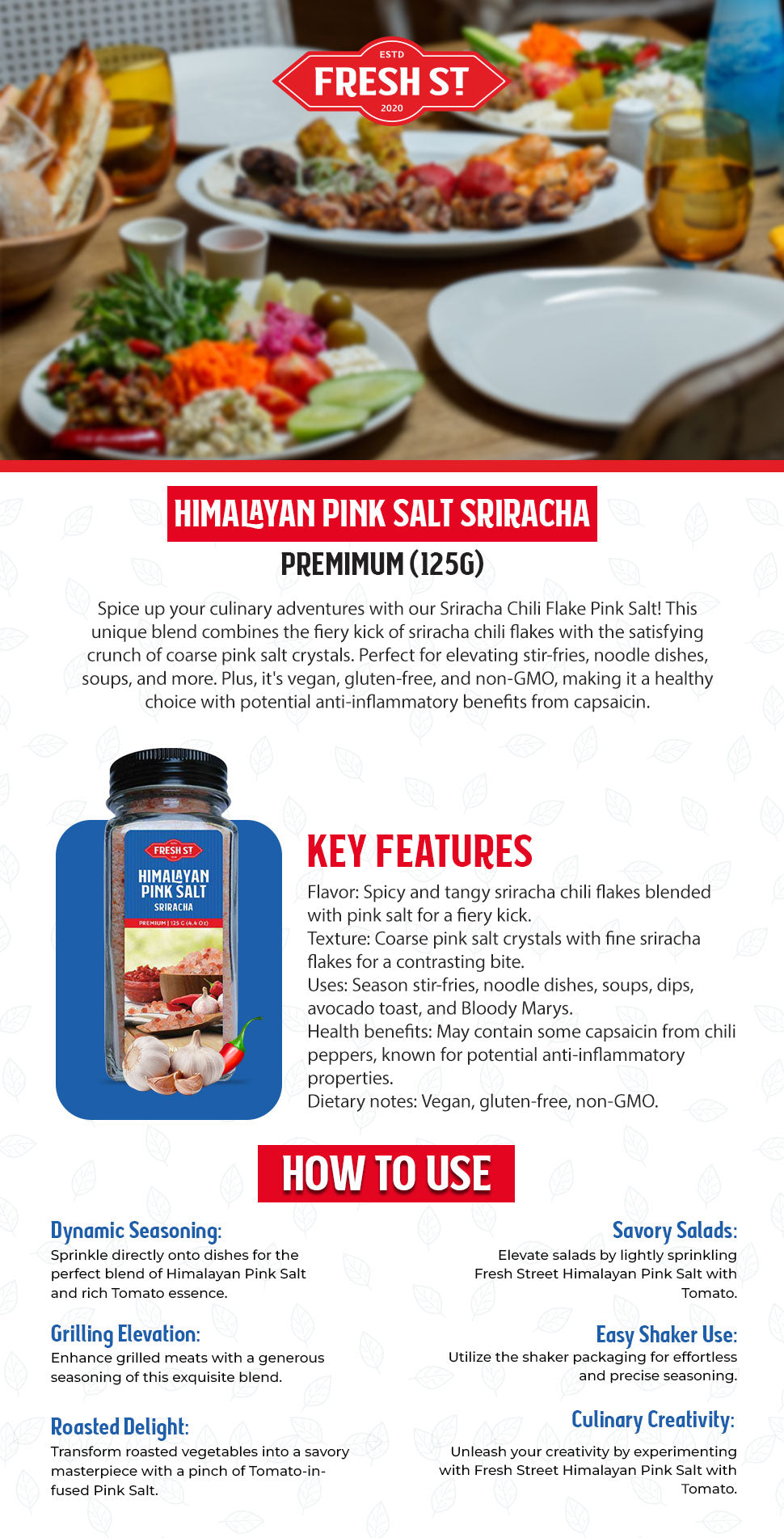 Elevate your culinary creations with our Himalayan Pink Salt Sriracha. This exciting blend combines fiery sriracha chili flakes with pink salt crystals, adding a bold, spicy kick to stir-fries, noodles, soups, and more. Perfect for those who love a flavorful heat in their dishes.